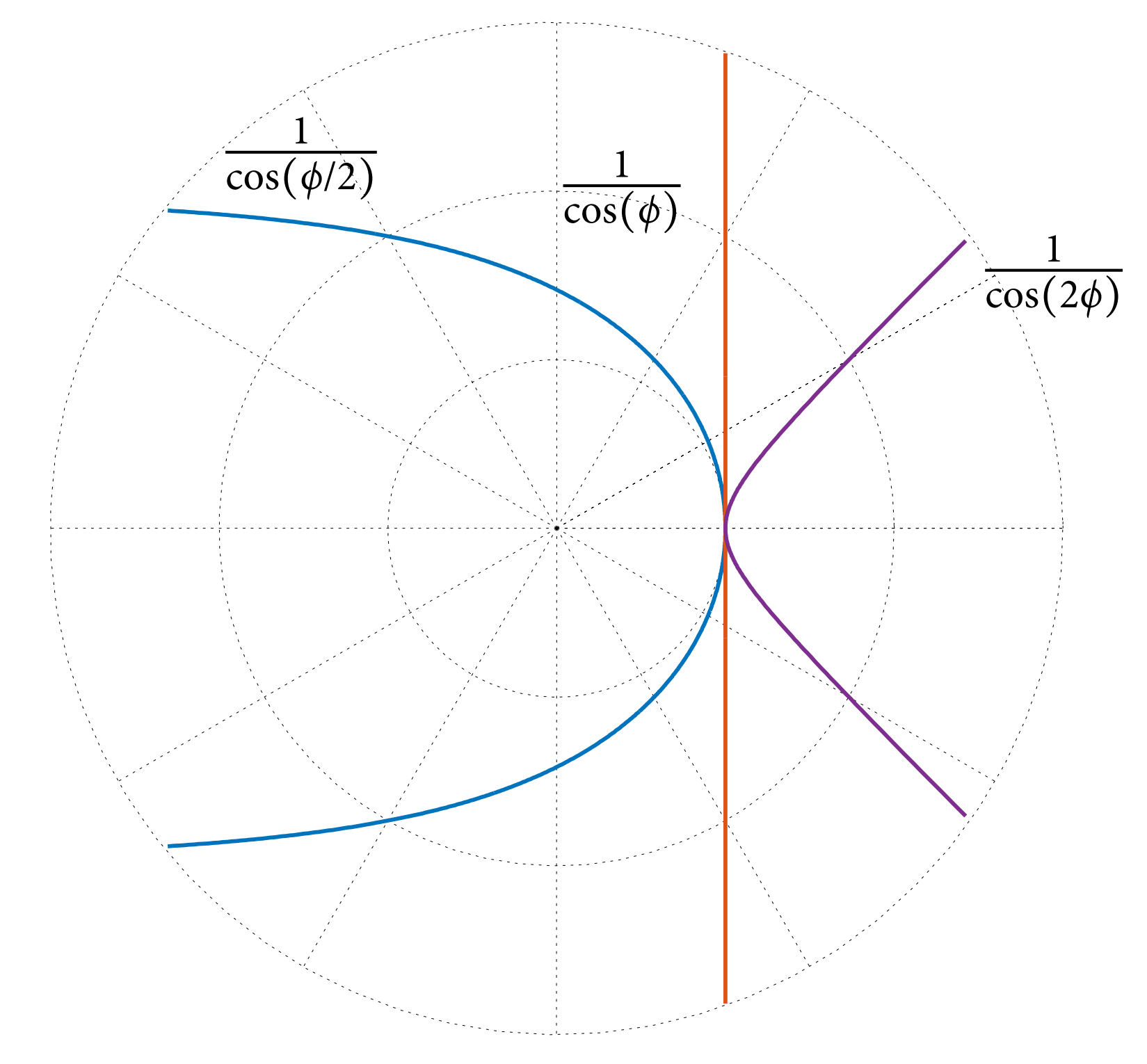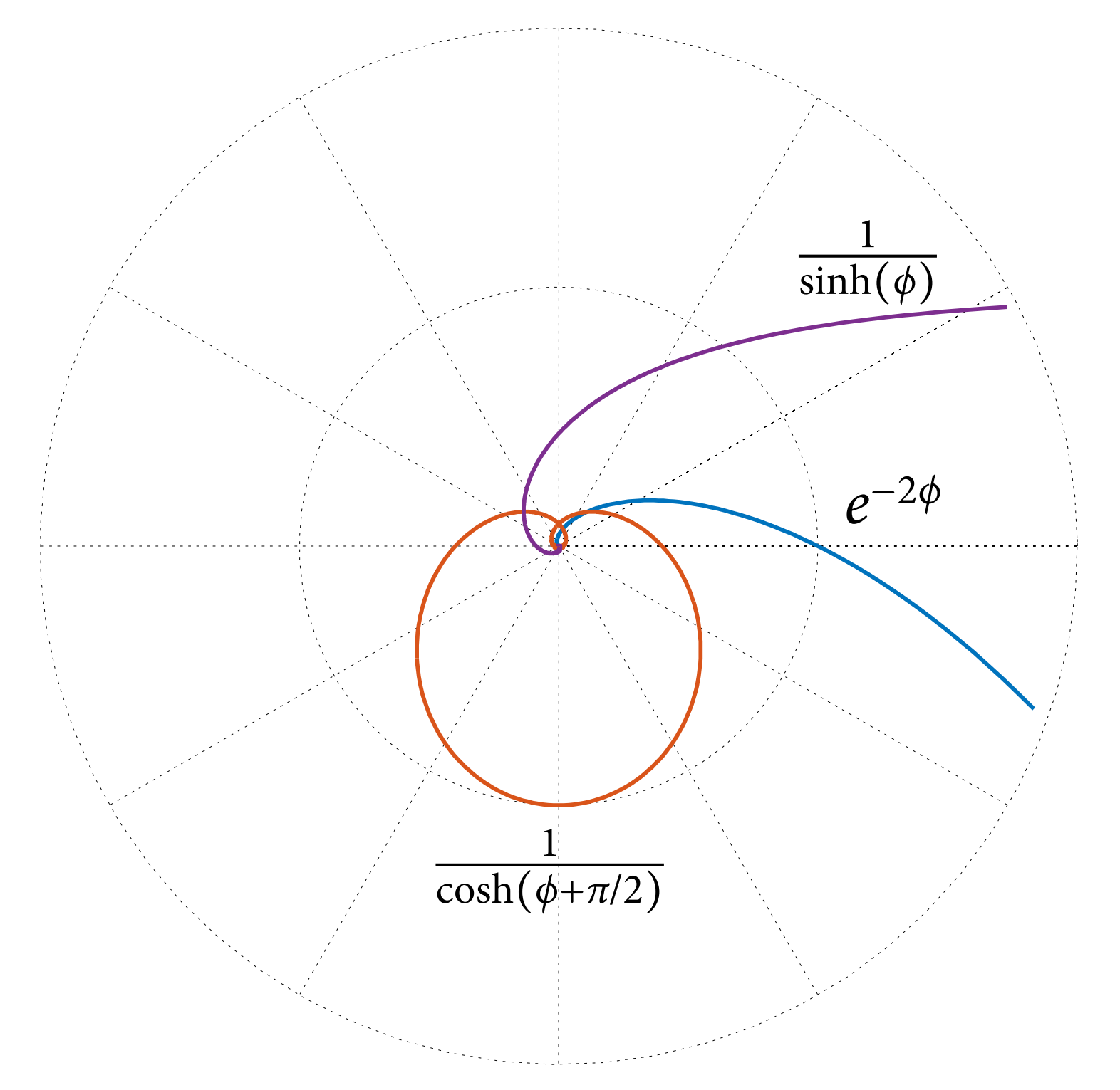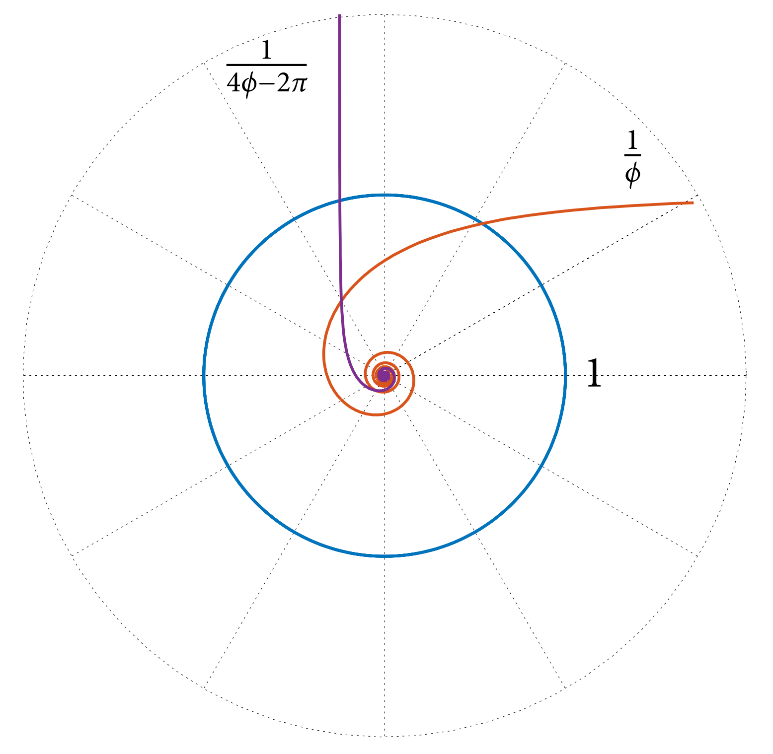 Tieto trajektórie, vykreslené v radiálnych súradniciach $r(\phi)$, sa nazývajú Cotesove špirály, po Newtonovom kamarátovi Rogerovi Cotesovi.