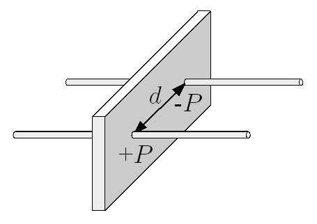 Bubo vzal dve rovnaké trubice a zamuroval ich do (nekonečne veľkej) steny hrúbky $H$ a s tepelnou vodivosťou $\lambda$ tak, že stenou prechádzajú kolmo a ich stredy sú vo vzájomnej vzdialenosti $d$. Jednou trubicou nechal pretekať teplú vodu, ktorá do steny privádza tepelný výkon $P$, druhou nechal pretekať studenú vodu, ktorá zo steny tepelný výkon $P$ odoberá. Bubo má niekoľko otázok o teplote steny v ustálenom stave: