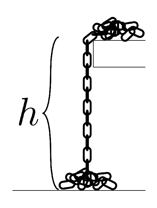 Paľo si na okraji stolíka s výškou $h$ nechal položenú (voľne zmotanú) retiazku dĺžky $L$. Ponáhľal sa však na skúšku a tak si nevšimol, že jeden jej koniec prevísa cez okraj a akurát sa dotýka zeme. Za aký čas spadne celá retiazka na zem?